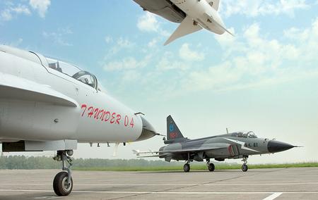 枭龙飞机(原名超七飞机)是针对二十一世纪空中作战环境,由中国和巴基斯坦共同投资,中航工业成都飞机设计研究所、中航工业成都飞机工业集团公司、中航技进出口有限责任公司等单位研制,巴基斯坦空军参与开发的第三代全天候、单发、先进多用途轻型战斗机。巴基斯坦空军将其命名为 “Thunder”,代号为 JF-17。