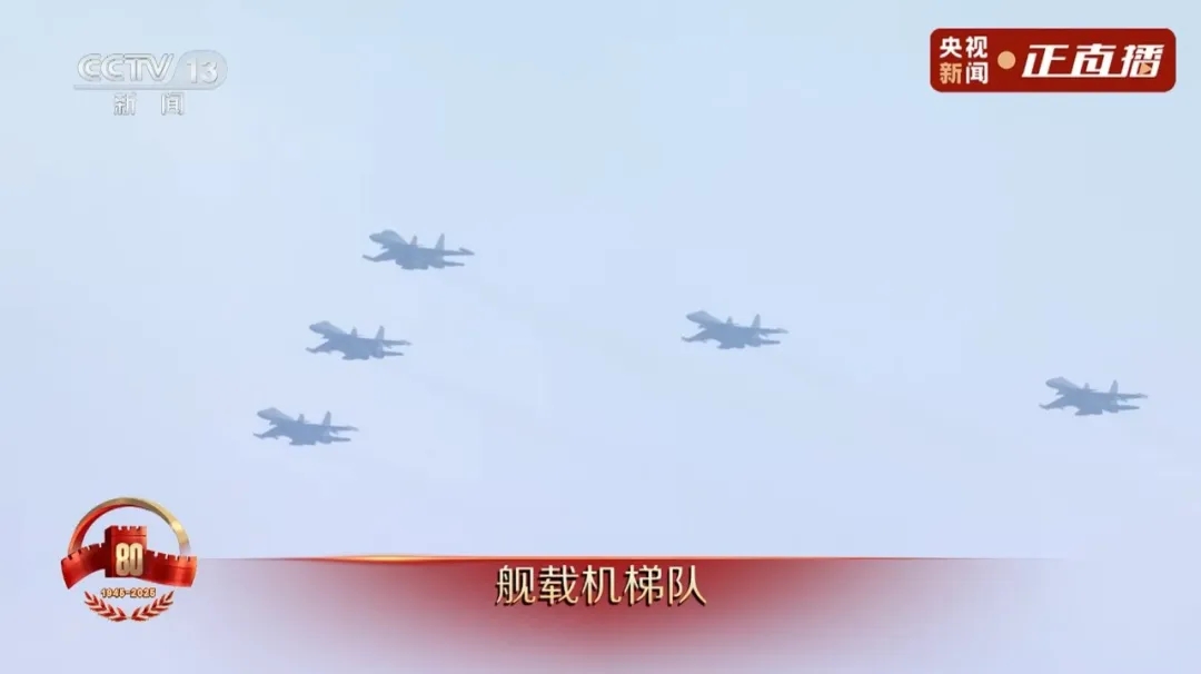 歼15DH、歼15DT、歼35、歼15T组成舰载机梯队接受检阅,从滑越起飞到弹射出击,从单一机型到多机协同,中国舰载机实现了跨越式发展。