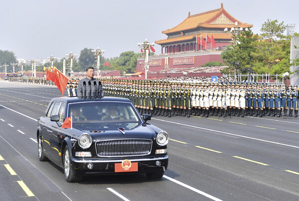 雄壮的军乐声中,习近平乘车沿着宽阔的长安街,依次检阅13个徒步方队、1个战旗方队、22个装备方队。受阅部队军容严整、意气风发,铁甲战车整齐列阵、威风凛凛。这是人民军队奋进建军百年的崭新亮相,这是中华民族捍卫世界和平的坚定宣示。